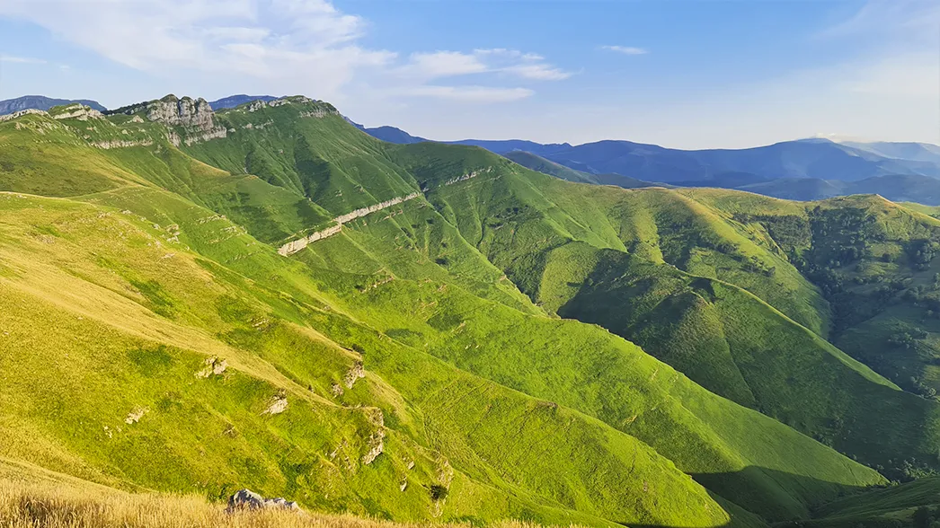 El Valle del Miera, un relieve abrupto fruto de un valle glaciar. La intrincada morfología rocosa invita a recorrer sus complejos laberintos a través de sus cuevas y enormes bloques calizos. Verás pendientes acusadas e impresionantes altitudes.